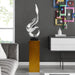 Chrome Flame Floor Sculpture With Wood Stand, 65" Tall