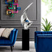 This modern art home decor floor sculpture will allow you to accentuate your style regardless of your chosen interior design. With it's extravagant size, this sculpture resembles a museum-like exhibit. It has a lavish design and size that will leave your guests intrigued. It is a strong focal point and brings beautiful energy into any atmosphere. A wonderful Finesse Decor sculpture that will add a luxurious feel to any space. This gorgeous sculpture is made out of resin and has a solid, non-fading, gorgeous sleek chrome color that gives it the modern art look and includes a white stand to showcase the sculpture as you would in a gallery.