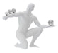 Make a statement with Finesse Decor's abstract art sculpture in your home. This male white sculpture projects the stability, strength, and calmness of a man. This home decor desk and shelf sculpture features a gymnast, propped on one knee while balancing chrome spheres on his arms; the intricate piece of decor achieves astonishing grace and skill, portraying balance and steadfastness.