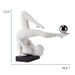 Make a statement with Finesse Decor's abstract art sculpture in your home. This female sculpture projects fortitude, stability and the flexibility of a woman's strength. This home decor desk and shelf sculpture features a gymnast, arching her body while balancing a sphere on her foot; the cute decor achieves a posture of astonishing grace and skill, portraying balance and steadfastness.