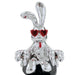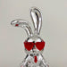 Meticulously cast in chrome, this sculpture boasts a flawless, mirror-like finish that not only dazzles the eye but also adds an element of luxury to your surroundings. The centerpiece of this extraordinary creation is the serene meditating bunny, beautifully poised in a lotus position. The vibrant accentuation is all surfaced by adding a pop of color with the stylish red sunsglasses and tie.