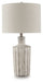 Exuding a casually cool sensibility, this table lamp is a bright idea whether it’s in a living space, bedroom or entry. The shapely base sports a vertical line pattern with a distressed finish that enhances its relaxed appeal.