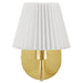 Merging contemporary design with timeless elegance, the Wave Wall Sconce features a graceful U-shaped metal arm that evokes a sense of balance and symmetry. This fixed arm, crafted from durable metal, upholds a pleated fabric shade that diffuses light into a warm, inviting glow. This wall sconce is ideal as a bedside reading lamp or as a refined accent light in a modern living room. The sconce's hardwired construction ensures a seamless integration into your space, complemented by a round metal backplate that adds a sleek touch to the overall design. Embrace both form and function with this single sconce, a modern wall light that makes a striking statement. This wall-mounted lamp is ETL listed and approved and requires a single E12 25W bulb (not included). Assembly required.