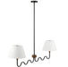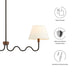 Illuminate your living space with the Sunlit 2-Light Hanging Pendant. A beautifully crafted wooden decoration anchors the design at the center of the two powder-coated squiggle arms, offering a touch of natural aesthetics that complements the playful undulating shape. This 2-light pendant with fabric shades diffuses light to cast a warm, welcoming glow, perfect over a kitchen island or dining room table. Function meets sophistication in this linear chandelier's design, with a structure that provides a stylish, steady light source. This 2-light pendant with fabric shades is hardwired, offering a clean installation with its round ceiling canopy and straight metal rod. Standing as a testament to modern pendant style, the ETL-listed Sunlit Linear Pendant Light requires two E26 25W bulbs (not included) and is ready to enhance the ambiance of your home interiors. Assembly required.