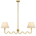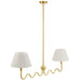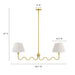 Merging contemporary design with timeless elegance, the Wave 2-Light Pendant features playful metal squiggle rods, reminiscent of ocean waves, that provide a unique linear form. This linear chandelier, topped with two pleated fabric shades, casts a warm, inviting glow, ideal for hanging above a kitchen island or as a statement dining room light. Its hardwired construction ensures a clean look, while the round metal ceiling canopy anchors the fixture with a sleek touch. Embrace both form and function with this 2-arm pendant light, a stylish hanging light fixture that makes a statement. This modern pendant light with fabric shades is ETL listed and approved and requires two E26 25W bulbs (not included). Assembly required.
