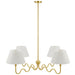 Merging contemporary design with timeless elegance, the Wave 4-Light Pendant features playful metal squiggle rods, reminiscent of ocean waves, that provide a unique linear form. This 4-light chandelier, topped with four pleated fabric shades, casts a warm, inviting glow, ideal for hanging in an entryway or living space or as a statement dining room light. Its hardwired construction ensures a clean look, while the round metal ceiling canopy anchors the fixture with a sleek touch. Embrace both form and function with this 4-arm pendant light, a stylish hanging light fixture that makes a statement. This modern pendant light with fabric shades is ETL listed and approved and requires four E26 25W bulbs (not included). Assembly required.