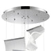 This chandelier has 5 acrylic abstract sheets that hang from a main round canopy. All of the sheets are individual to one another and have slightly different shapes. Each one hands from its own wire and it is adjustable on its own. You can create different designs and hang it as desired. The design creates an intricate and beautiful visual that will add a fun allure, while maintaining a contemporary design and aesthetic to any space.