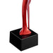 The sculpture is 29 inches tall with a 5" by 5" black MDF base. The sculpture is made to last and built with quality high end resin. These living room accessories are painted with high gloss solid metallic color that will last through the years without fading. Adding a smooth, slip-free base to avoid scratches or scuffs to your wood, glass, metal, stone or countertop display surfaces.