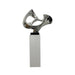 Chrome Abstract Mask Floor Sculpture With White Stand, 54" Tall