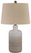 | Details | Made of white and taupe glazed ceramic with modified drum shade, 3-way switch, 1 type A bulb (not included); 100 watts max or LED equivalent; UL Listed, Clean with a soft, dry cloth, Assembly required | |
