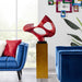 Metallic Red Abstract Mask Floor Sculpture With Wood Stand, 54" Tall