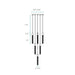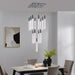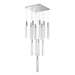 This chandelier has a square canopy that measures 20" by 20", each acrylic pendant is 17.5" by 2" in diameter. This chandelier functions as well on a sloped ceiling and looks wonderful over a dining table, stair case, or grand foyer.