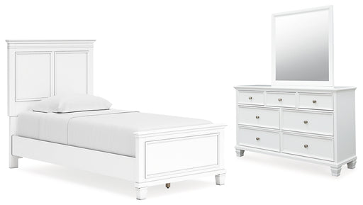 Signature Design by Ashley®This twin sleigh headboard and dresser/mirror's crisp cottage white gives traditional Louis Philippe profiling a delightful style awakening. The lo...
