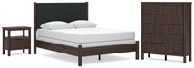 Details PCB2614B24: Includes upholstered panel headboard and panel footboard with rails, Made with engineered wood (MDF/particleboard/plywood) and decorative laminate for the right balance of affordability and durability, Rich brown finish over replicated walnut wood grain with authentic touch, Decorative laminate replicates natural or man-made material surfaces with consistent color, pattern and texture, Polyester upholstery, Foundation/box spring required, sold separately, Mattress available, sold separately , Minor assembly required, PCB2614-46: Made with engineered wood (MDF/particleboard/plywood) and decorative laminate for the right balance of affordability and durability, Rich brown finish over replicated walnut wood grain with authentic touch, Decorative laminate replicates natural or man-made material surfaces with consistent color, pattern and texture, Black drawer pulls, 5 smooth-operating drawers, Drawer interiors are lined with a faux linen laminate for a clean, finished look, Safety is a top priority, clothing storage units are designed to meet the most current standard for stability, ASTM F 2057 (ASTM International), Drawers extend out to accommodate maximum access to drawer interior while maintaining safety, Minor assembly required, PCB2614-91: Made with engineered wood (MDF/particleboard/plywood) and decorative laminate for the right balance of affordability and durability, Rich brown finish over replicated walnut wood grain with authentic touch, Decorative laminate replicates natural or man-made material surfaces with consistent color, pattern and texture, Black drawer pull, 1 smooth-operating drawer, Drawer interior lined with a faux linen laminate for a clean, finished look, Open shelf, Ambient lighting under top, USB-A and USB-C charging ports, Power cord included; UL Listed, Minor assembly required,