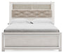 | Details | Includes queen upholstered panel bookcase headboard, panel footboard, platform rails and roll slats, Made with engineered wood (MDF/particleboard) and decorative laminate, Light finish with subtle pearl effect over replicated cedar grain with authentic touch, Gray polyester upholstery with faux crystal button tufting, Glitter panel inset bookshelf, Faceted chrome-tone accents, LED light strip with remote-controlled color and brightness options, Power cord included; UL Listed, Mattress available, sold separately, Bed does not require a foundation/box spring, Assembly required, Bed is compatible with an adjustable base | |