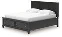 | Details | Includes panel headboard, storage footboard with roll slats and rails , Made with hardwood solids, birch veneer and MDF substrate, Side rails feature laminated solid hardwood slat support rails (or LVL) with glued and screwed blocking for added strength, Black painted finish, Round metal drawer knobs with satin nickel-tone finish, 2 smooth-gliding drawers with ball-bearing side glides in footboard, Tapered feet, Bed does not require additional foundation/box spring; accommodates most zero clearance adjustable bases with the addition of a bunkie board, Mattress available, sold separately, Assembly required | |