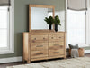 Looking to create a bedroom that feels airy and beautifully put together? This casually comfy dresser with mirror is your perfect solution. Its clean lines, replicated oak grain and on-trend natural finish exude a charming cottage-inspired feel that brightens your restful retreat. Spacious drawers with dark bronze-tone knobs stow away clothes and more. Now there’s a fresh take on country living we can get behind.