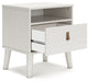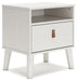 | Details | Made with engineered wood (MDF/particleboard/plywood) and decorative laminate for the right balance of affordability and durability, White painted finish with subtle replicated wood grain, Faux leather drawer pull with brass-tone rivets; light brown and gray options included, 1 smooth-gliding drawer with vinyl-wrapped sides and back, Open cubby, Splay legs, Assembly required | |