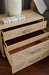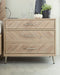 The hallmark of this design is the natural Biscotti finish and the use of texture, wood grain and inlay patterns to subtly tease the eye. The brushed stainless metal legs and uniquely designed hardware provides a subtle contrast. The transitional style will fit flexibly into multiple interior styles and spaces.