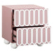 Say goodbye to a boring bedtime routine with the Tori Motif Nightstand, available in dreamy mauve and sophisticated taupe, each featuring a statement-making facade that truly pops. Its solid wood, spherical legs infuse a sculptural Hollywood buzz, while the medium sheen on the surfaces delivers just the right amount of drama without fussy maintenance. Plus, the nightstand's drawers glide smoothly on soft-close rails, ensuring you keep the morning peace, not waking your partner as you start your day.