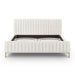 We can't guarantee your dreams will come true, but at least we can help you dream in style. The Angela bed features glam design, channel tufting and gold legs that pop against the sumptuous upholstery. Available in queen or king and multiple color and fabric options.