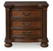 | Details | B764B10: Includes poster headboard/footboard panels, rails and headboard posts, Made with hardwood solids, cherry veneer with MDF substrates, decorative cast resin and furniture grade plastic components , Cherry brown finish, Headboard with metallic accent filigree, Foundation/box spring required, sold separately, Mattress available, sold separately, Assembly required, B764B1: Includes dresser and mirror, Made with hardwood solids, cherry veneer with MDF substrates, decorative cast resin and furniture grade plastic components , Cherry brown finish, Decorative metal drawer pulls with dark bronze-tone finish, 7 drawers with fully finished interior, dovetail construction and ball-bearing side glides, Mirror attaches to back of dresser, B764-93: Made with hardwood solids, cherry veneer with MDF substrates, decorative cast resin and furniture grade plastic components, Cherry brown finish, Decorative metal drawer pulls with dark bronze-tone finish, 2 drawers with fully finished interior, dovetail construction and ball-bearing side glides, Pull-out tray behind bottom drawer, | |