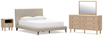 Cielden Queen Upholstered Bed with Roll Slats, Dresser, Mirror and Nightstand