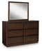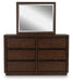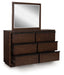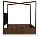 Details PCB857B2: Includes canopy, upholstered poster headboard, footboard, rails, posts and slats, Made with hardwood solids, mango wood veneer and MDF substrates , Side rails feature laminated solid hardwood slat support rails (or LVL) with glued and screwed blocking for added strength, Complex, rich dark brown finish, Foam headboard cushion with polyester upholstery , Measure room, including ceiling height, to ensure bed clears fans and light fixtures, Foundation/box spring required, sold separately , Mattress available, sold separately , USB-A and USB-C charging ports, Power cord included; UL Listed, Assembly required, PCB857B1: Made with hardwood solids, mango wood veneer and MDF substrates , Complex, rich dark brown finish, Full-length metal rail pulls with matte black finish, 6 smooth-gliding drawers with fully finished interiors, dovetail construction and heavy-duty ball-bearing side glides (top drawers felt lined), Mirror attaches to back of dresser, Soft rounded pilasters, Raised plinth base,