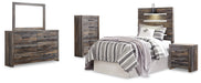 Drystan Twin Panel Headboard Bed with Mirrored Dresser, Chest and Nightstand