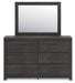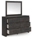Details PCB2108B11: Includes panel headboard/footboard and rails, Made with engineered wood (MDF/particleboard/plywood) and decorative laminate for the right balance of affordability and durability , Charcoal finish over replicated oak grain with authentic touch, Decorative laminate replicates natural or man-made material surfaces with consistent color, pattern and texture, Foundation/box spring required, sold separately , Mattress available, sold separately, Minor assembly required, PCB2108B1: Includes dresser and mirror, Made with engineered wood (MDF/particleboard/plywood) and decorative laminate for the right balance of affordability and durability , Charcoal finish over replicated oak grain with authentic touch, Decorative laminate replicates natural or man-made material surfaces with consistent color, pattern and texture, Large-scale dark colored handles, 6 smooth-gliding drawers, Drawer interiors are lined with a faux linen laminate for a clean, finished look , Mirror attaches to back of dresser; can also be mounted on wall horizontally or vertically, Safety is a top priority, clothing storage units are designed to meet the most current standard for stability, ASTM F 2057 (ASTM International), Drawers extend out to accommodate maximum access to drawer interior while maintaining safety, Minor assembly required,