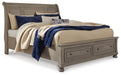 Lettner Queen Sleigh Bed with 2 Storage Drawers with Mirrored Dresser