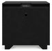 | Details | Made with pine solids, veneers and engineered wood substrate, Textured black wood stain with waxy topcoat, Hardware-less design, 2 drawers with fully finished interiors, dovetail construction and ball-bearing side glides, 110V power supply with dual USB charging ports, Power cord included; UL Listed | |