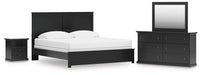 Maribel King Panel Bed with Mirrored Dresser and Nightstand