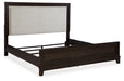 Neymorton California King Upholstered Panel Bed with Mirrored Dresser