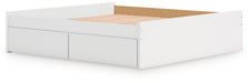 Create the modern bedroom of your dreams. This king platform bed offers a minimal design with maximum style, combining ultra-clean lines and an easy-elegant solid white finish with a hardware-less aesthetic. Spacious storage drawers with ball-bearing glides make putting things away a snap. And this bed doesn't need a box spring or foundation, so you can splurge on a mattress that's sure to carry you away to a soothing place.