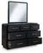 | Details | B821B5: Includes upholstered panel headboard, footboard and rails , Made with hardwood solids and ash veneer, Black finish on textured wood grain surface , Waterfall edges, Polyester upholstery, Foundation/box spring required, sold separately, Mattress available, sold separately, Assembly required, B821B1: Includes dresser and mirror, Made with hardwood solids and ash veneer, Black finish on textured wood grain surface , Burnished nickel-tone pulls, Waterfall edges, 7 smooth-gliding drawers with fully finished interior, dovetail construction and heavy duty ball-bearing side glides, Mirror attaches to back of dresser, B821-91: Made with hardwood solids and ash veneer, Black finish on textured wood grain surface, Brushed nickel-tone pulls, Waterfall edges, Smooth-gliding drawer with fully finished interior, dovetail construction and heavy duty ball-bearing side glides, Lower cubby shelf with built-in LED nightlight, 110V power supply with USB-A and USB-C charging ports, Power cord included; UL Listed, | |