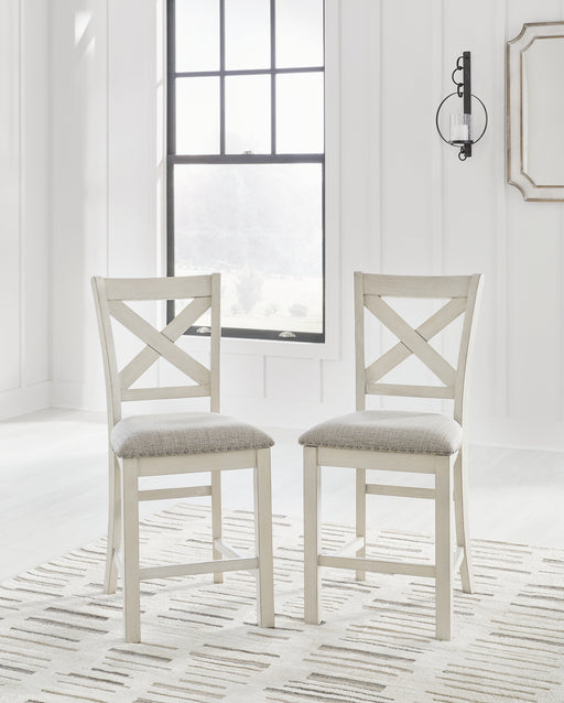 This counter height bar stool is sure to impress come mealtime. With its white finish and light gray upholstery, farmhouse-style seating has never ...