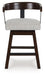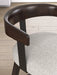 | Details | Made with solid wood frame, Dry, smoky dark brown oak finish, Polyester upholstery, Foam cushioned seat, 360-degree swivel, Assembly required | |