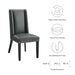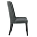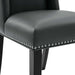 Explore the vast riches of a treasured heritage with the Baron Dining Chair. Designed to resonate elegance, this dining side chair features a charming back and polished nailhead trimmed seat with a dash of grace and noble appeal. Complete with dense foam padding, fine vegan leather upholstery, solid wood and MDF frame, and legs with non-marking foot glides, this updated Parsons chair is a stylish dining chair perfect for the dining room, living room, entryway, or home office. Weight Capacity: 500 lbs.