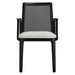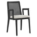 Elevate your dining space with the Monarch Dining Armchair, a stunning blend of French country elegance and modern farmhouse style. This wood dining room chair features a sturdy beech wood frame and a rattan backrest with intricate cane webbing, granting both style and durability. The dense foam padded seat, covered in soft fabric upholstery, provides lasting comfort, making it a comfortable fabric accent chair perfect for longer meals. Designed as a comfortable dining chair with armrests, Monarch offers versatile placement around a dining table, in a living room, or in an office space. Whether used as a rattan back dining chair with arms or as a cane accent chair, it enhances your dining experience with its refined aesthetic and protects floors with its non-marking floor glides. This farmhouse cane back dining armchair fits seamlessly into any d�cor, making it perfect for both formal dinners and casual family meals. The Monarch Farmhouse Dining Armchair combines traditional craftsmanship with contemporary style, making it a versatile wood dining accent chair with a cane back for your dining room. Weight Capacity: 330 lbs.