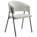 Meet Nella�a pair of dining room accent chairs that blend vintage charm with versatile functionality. The seat and backrest on these padded chairs are each elegantly upholstered in heathered chenille fabric and feature a stylish gap between them, shaping the elegant contour of an open back armchair. This set of 2 barrel dining chairs stand on splayed metal legs that gracefully ascend and curve around a decorative round button, enhancing the club chair's retro aesthetic. Each leg is thoughtfully finished with foot pins to protect your floors, ensuring practicality complements style. The Nella Chenille Upholstered kitchen table chairs do require assembly but simple instructions are included, so you can have these comfy dining chairs set up in no time. Ideal for placement around a dining table or as living room accent chairs, these curved back dining armchairs are designed to complement your interior and offer a delightful seating experience. Perfect for those who value a mix of contemporary and mid-century styles, the Nella accent dining chairs introduce a tasteful highlight to any area. Weight Capacity: 330 lbs.