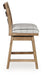 Rustic character with a dash of refinement. Outfitted with trendy plaid upholstery and completed with a natural finish, this counter height swivel bar stool combines the authentic beauty of wood with the must-have function of performance fabric. A ladderback design lends a classically chic feel to the look. Loaded with charm, it completes your dining space with modern farmhouse flair.