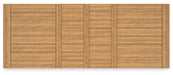 Details D773-32: Made with rubberwood solids, distressed pine veneers and MDF substrates, Distressed light brown pine finish, Double trestle base, Seats up to 10, 2 removable center leaves, Table extends by pulling both ends and dropping in leaf, Solid wood stretcher, Assembly required, D773-124: Made with wood, Distressed light brown pine finish, Foam cushion with textured polyester upholstery, Assembly required,