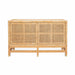 The Amara Buffet is the epitome of relaxed California-cool energy. This piece offers great storage and style with its high-quality wrapped rattan design, brass-capped legs and lucite hardware. Its natural, earthy look complements a wide variety of decor styles, the rattan also adds a touch of warmth and texture to any space.