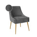 Sit pretty in this sumptuous yet durable velvet chair. The Beatrix dazzles as a dining chair or as an accent piece. Available in several colors with fab gold stainless steel legs and a matching handle on the back. Prop it into any room for a luxe, glamour effect.