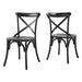 Introduce feelings of nostalgia as you gather around the dining table for a quick breakfast or dinner with friends with the Gear Dining Side Chair. Blending farmhouse charm with modern style, this dining chair features an X-brace back and stretchers between splayed legs. With non-marking foot caps to protect flooring, this side chair is durably crafted with durable elm wood for a sturdy construction built to last. Make a statement in your dining space or kitchen nook with this versatile wood dining chair that can also be used as an accent chair in a living room or desk chair in a home office. Weight Capacity: 330 lbs.