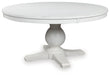 Details Includes dining table top and base, Top made with hardwood solids, mango wood veneer and MDF substrate, Cast resin pedestal base, Antiqued white finish, Assembly required