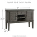 | Details | Made with hardwood solids, select acacia veneer and engineered wood, Antiqued gray finish, 2 cabinets, each with a center shelf, Shelves are removable and adjustable, Smooth-gliding drawer, Open cubby with wine rack divider, Assembly required | |