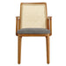 Elevate your dining space with the Monarch Dining Armchair, a stunning blend of French country elegance and modern farmhouse style. This wood dining room chair features a sturdy beech wood frame and a rattan backrest with intricate cane webbing, granting both style and durability. The dense foam padded seat, covered in soft fabric upholstery, provides lasting comfort, making it a comfortable fabric accent chair perfect for longer meals. Designed as a comfortable dining chair with armrests, Monarch offers versatile placement around a dining table, in a living room, or in an office space. Whether used as a rattan back dining chair with arms or as a cane accent chair, it enhances your dining experience with its refined aesthetic and protects floors with its non-marking floor glides. This farmhouse cane back dining armchair fits seamlessly into any d�cor, making it perfect for both formal dinners and casual family meals. The Monarch Farmhouse Dining Armchair combines traditional craftsmanship with contemporary style, making it a versatile wood dining accent chair with a cane back for your dining room. Weight Capacity: 330 lbs.