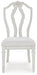 Transform your home into a haven of timeless elegance with this dining chair. Its traditional silhouette, adorned in a classic antiqued white finish, is paired with plush cushioning covered in light pearl gray upholstery. Whether you're settling in at mealtime or working from home, this chair serves your sense of relaxed refinement beautifully.